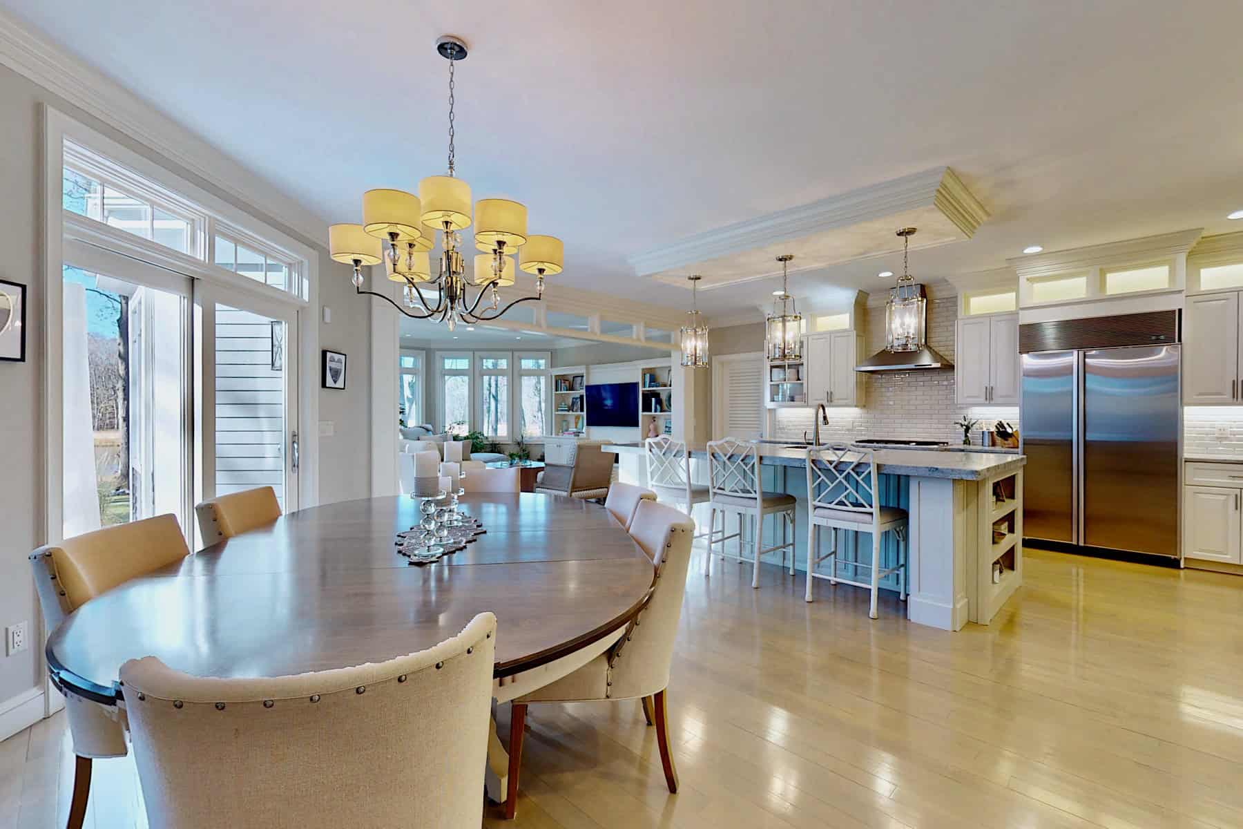 - Sweeping Squamscott River views framed by soaring ceilings and walls of windows